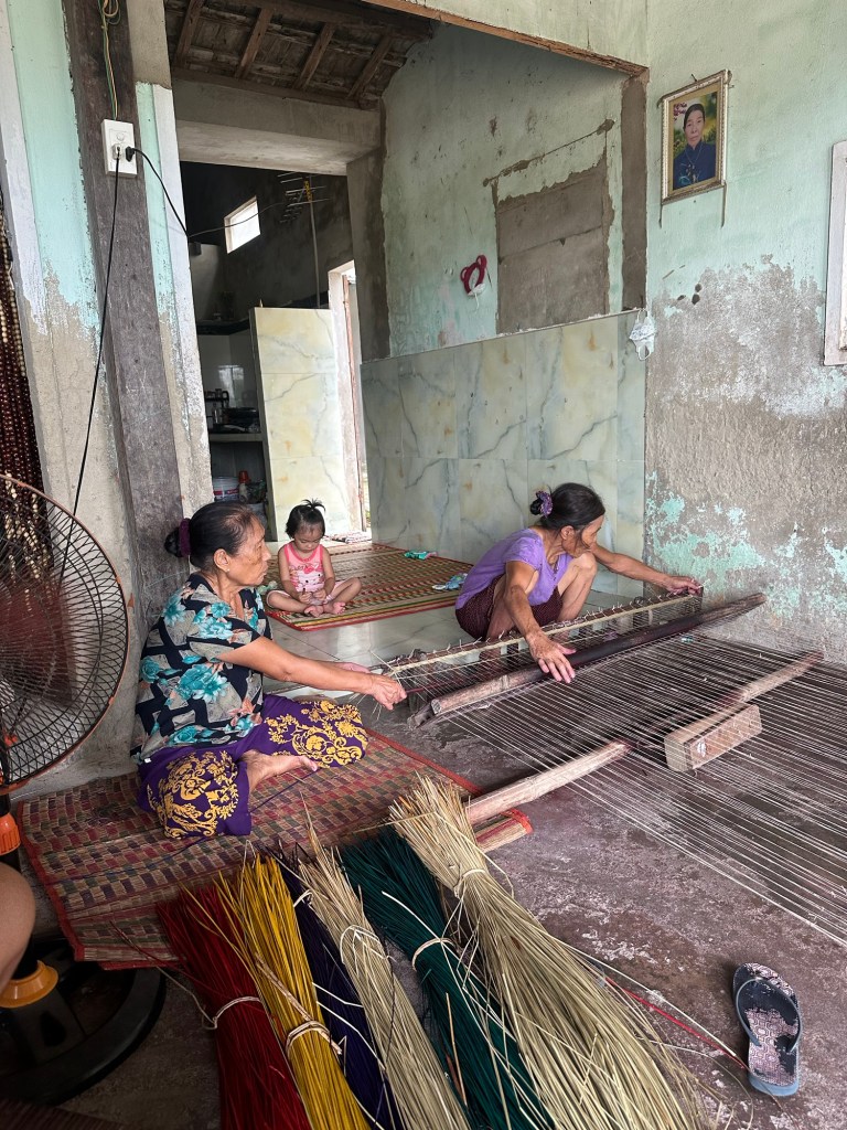 At our next stop, we learned the art of weaving mats from two women who have been weaving mats for their village for over 60 years. Though they did not speak any English, our smiles spoke for themselves.